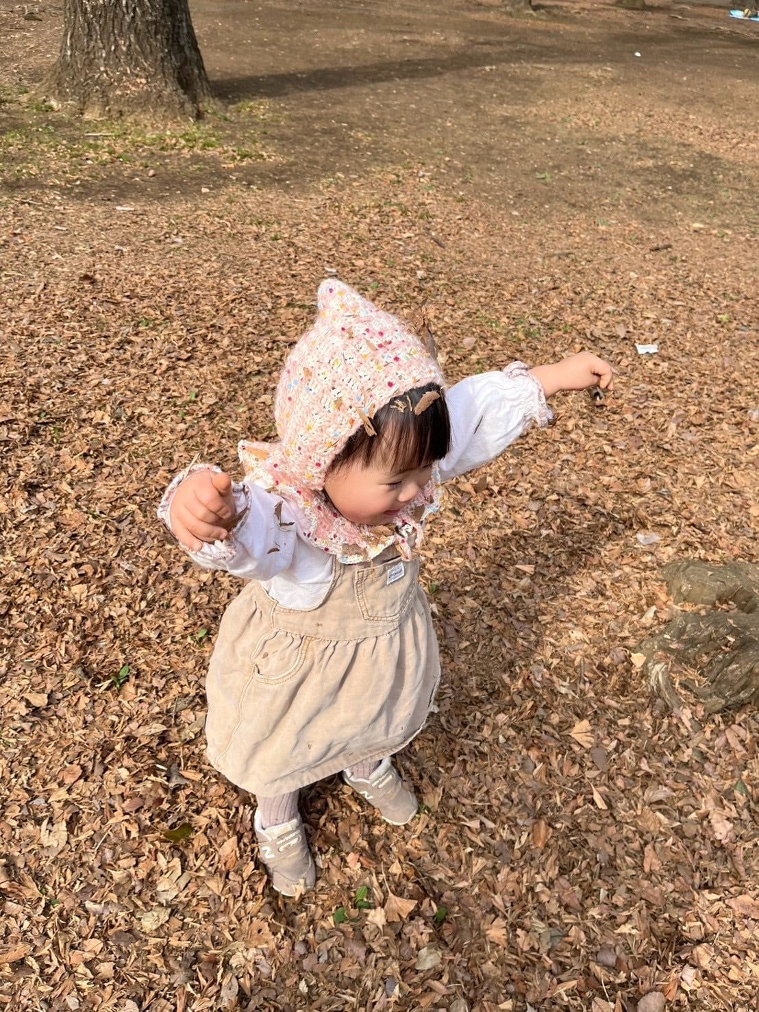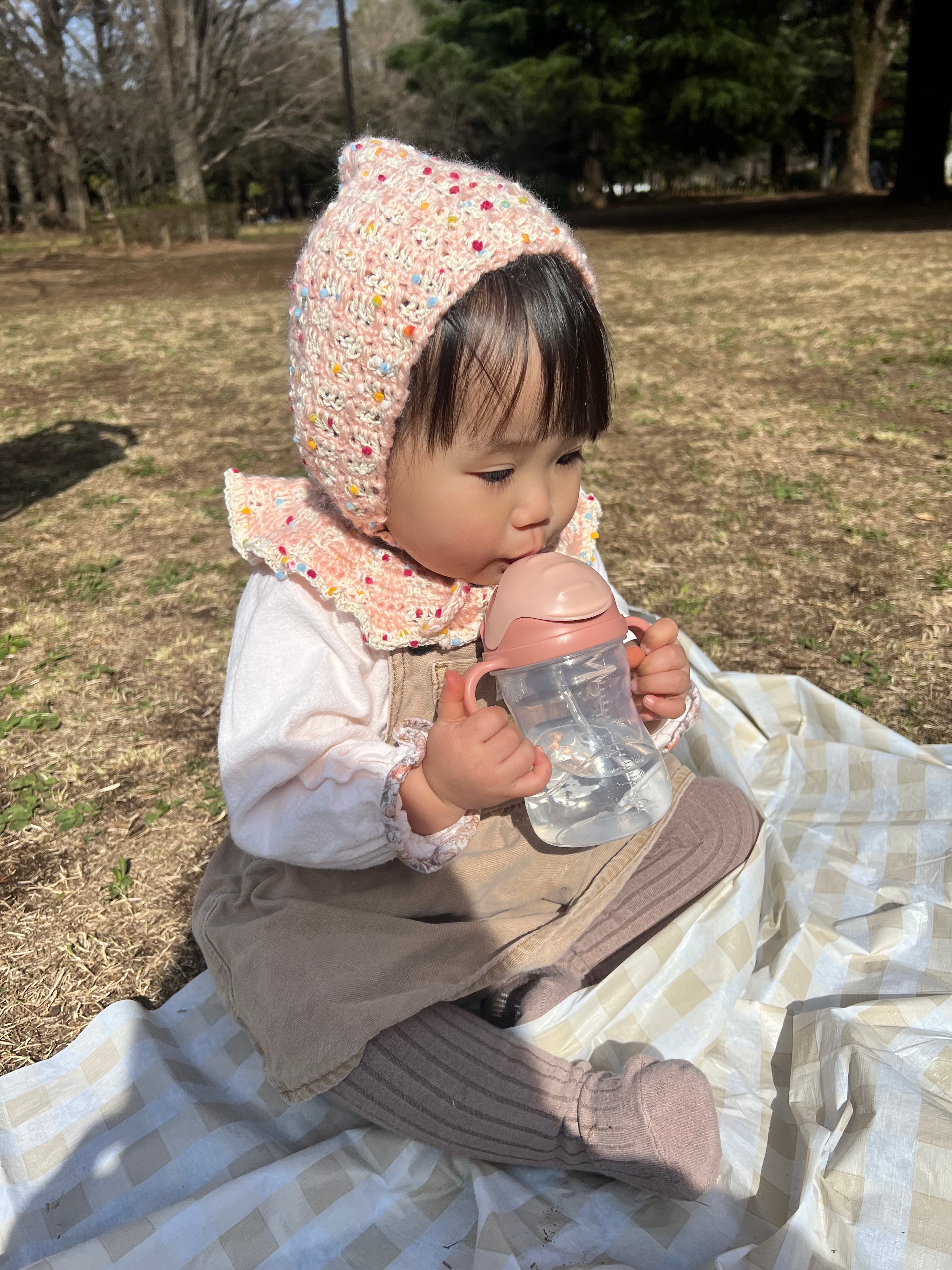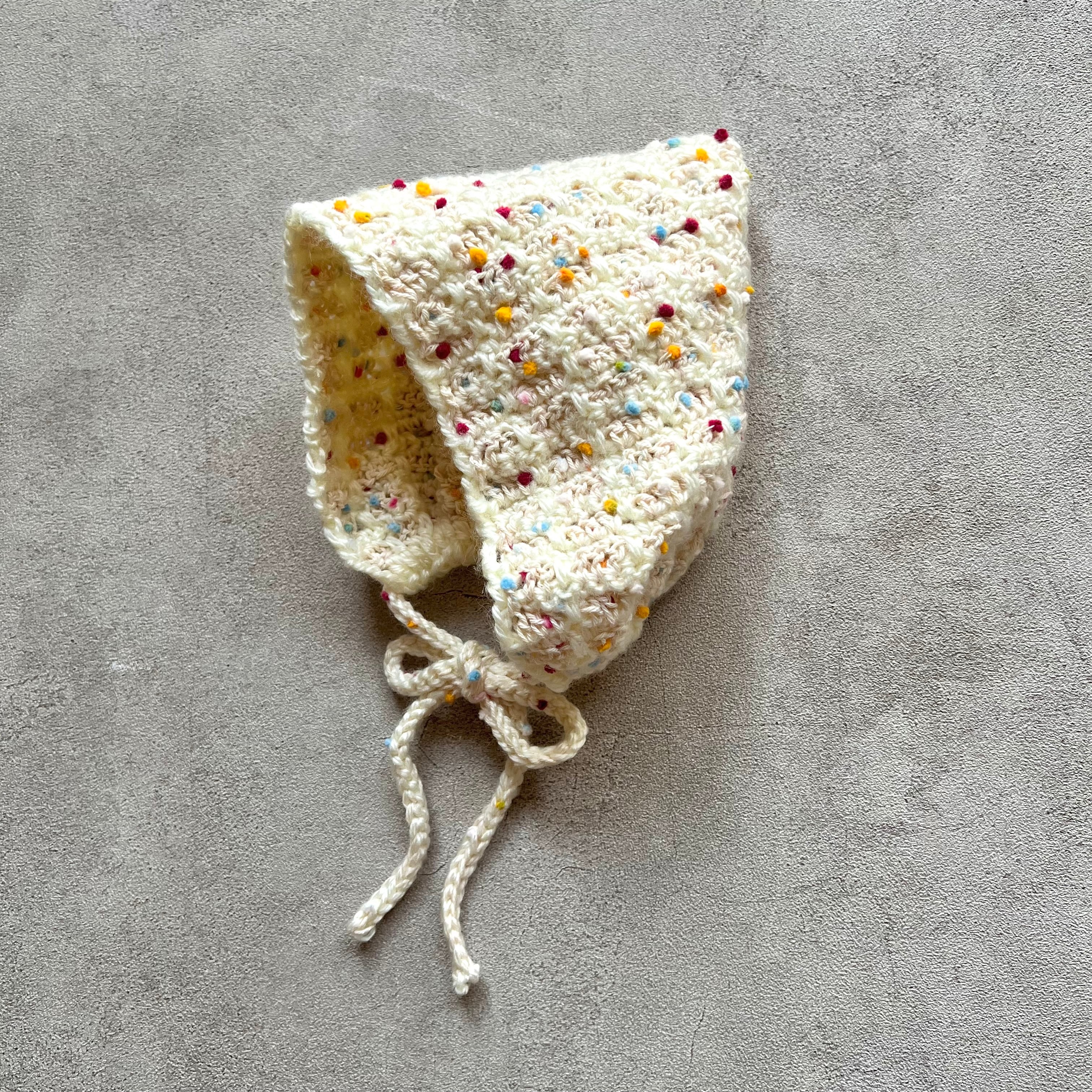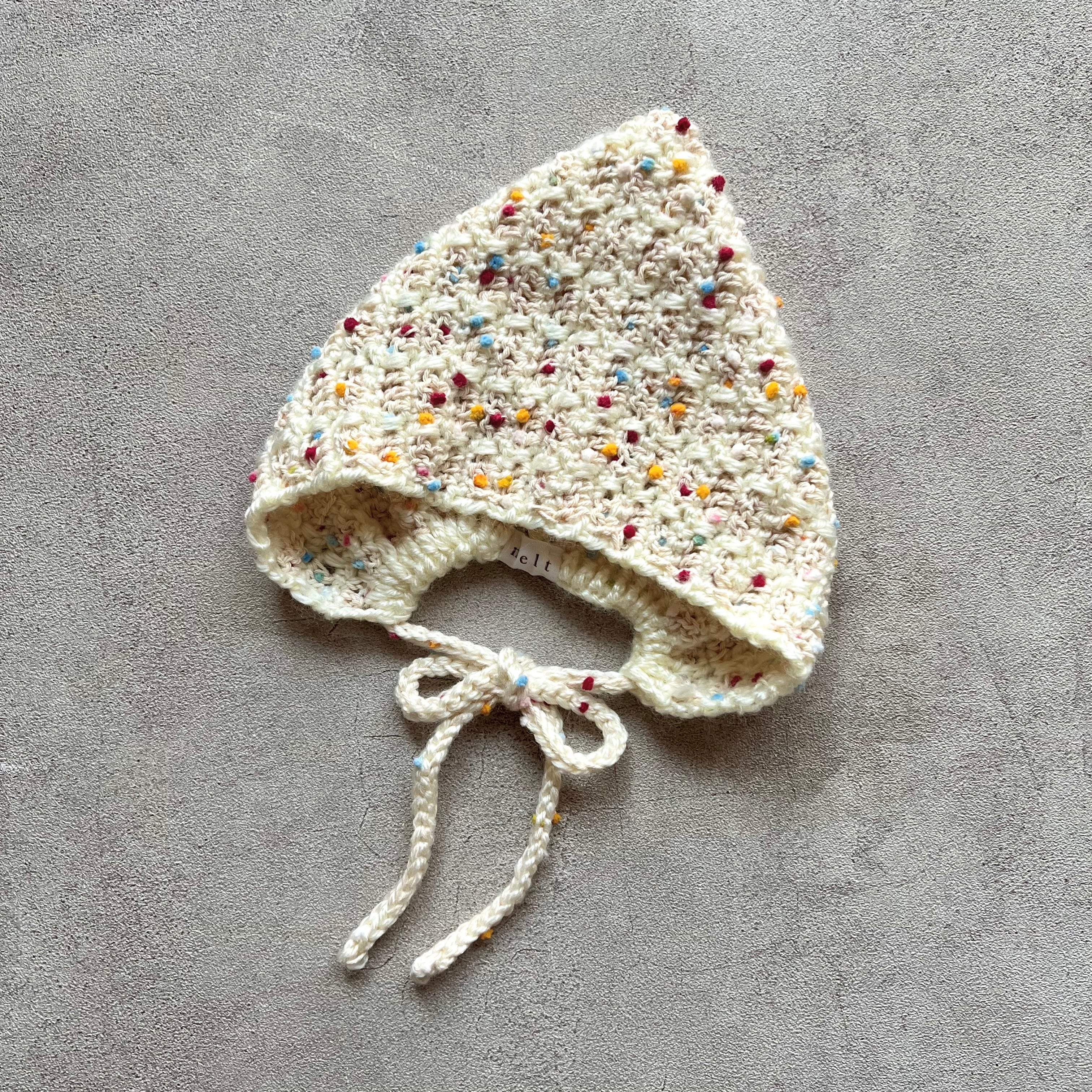 2種類と糸をmixしたチェック柄のボンネットです。