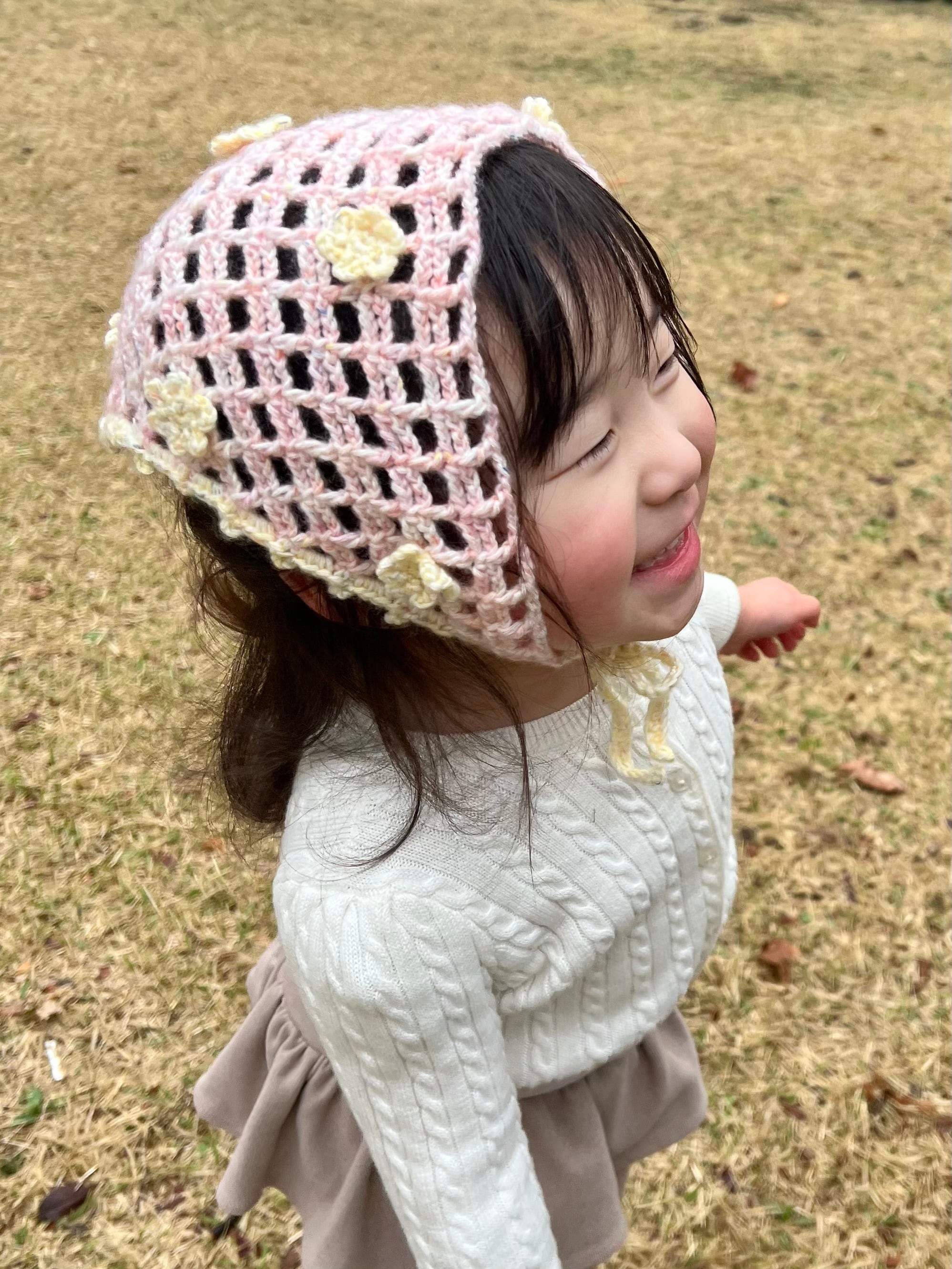 (即納)透かし編みの小花バブーシュカ